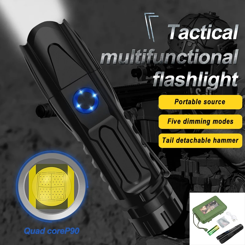 5 Mode XHP90.2 Powerful LED flashlight Riding convoy light 50000lm Lantern Tactical Camping Waterpr