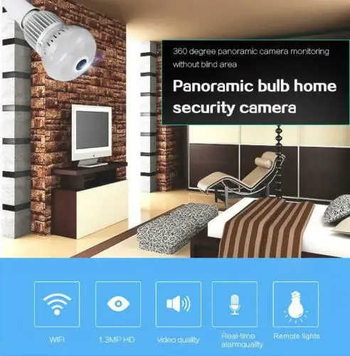 EVKVO 360 Video Light IP Camera IR Night Vision Fisheye Panoramic Home CCTV Security Mini Wireless