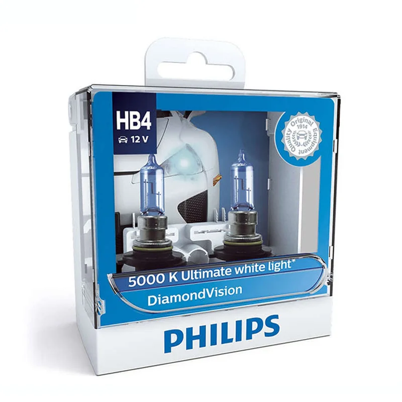 Philips HB4 9006 12V 55W Diamond Vision 5000K Super White Light Halogen Bulbs Car Headlight Fog Lam